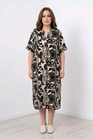 Plisseret kjole i plus size sort