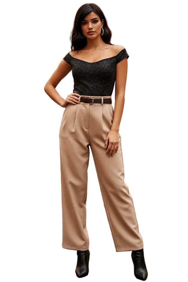 Flotte bukser med meget brede ben. Der er tilhørende brunt bælte.